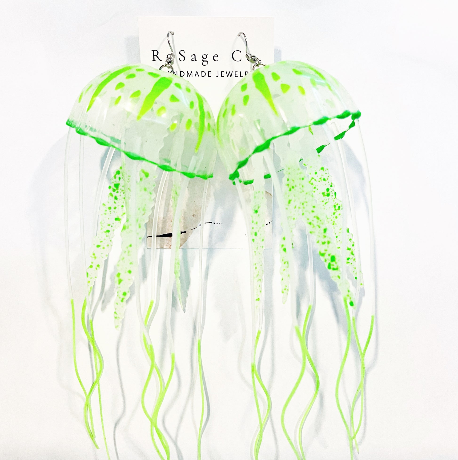 Handmade green jellyfish earrings.